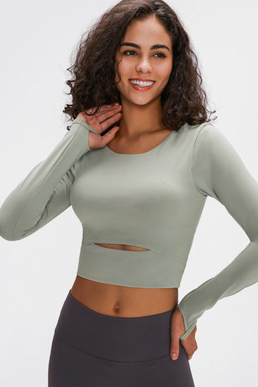 Just like your mom always said, "Make sure you're standing up straight!" Put your mother's mind at ease with this long-sleeved cropped top with a sports strap that offers much-appreciated support to moms everywhere.